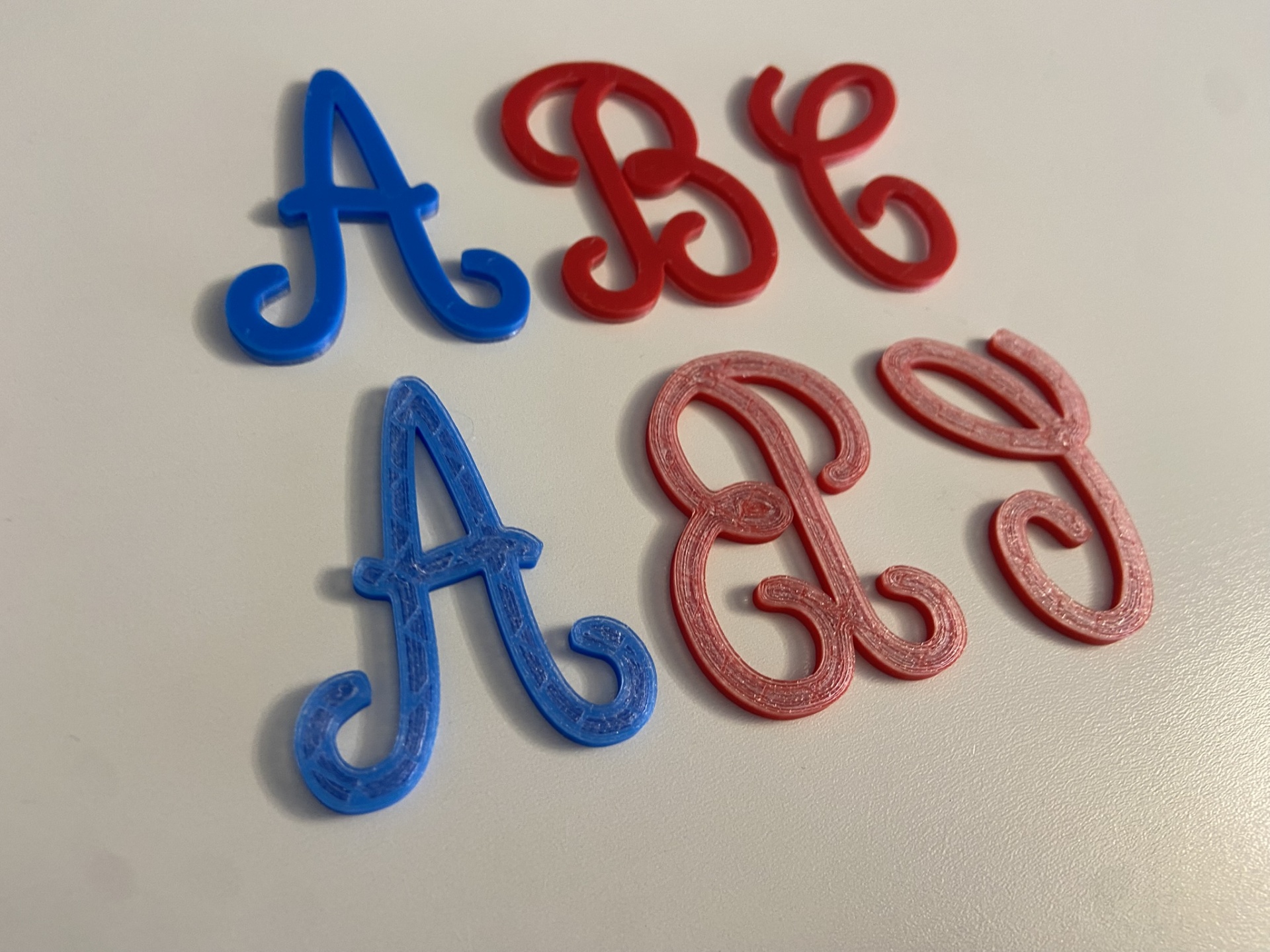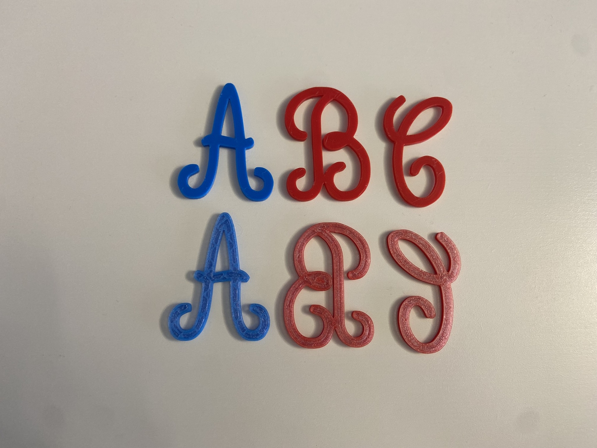 As letras são impressas na frente com a cor escolhida.