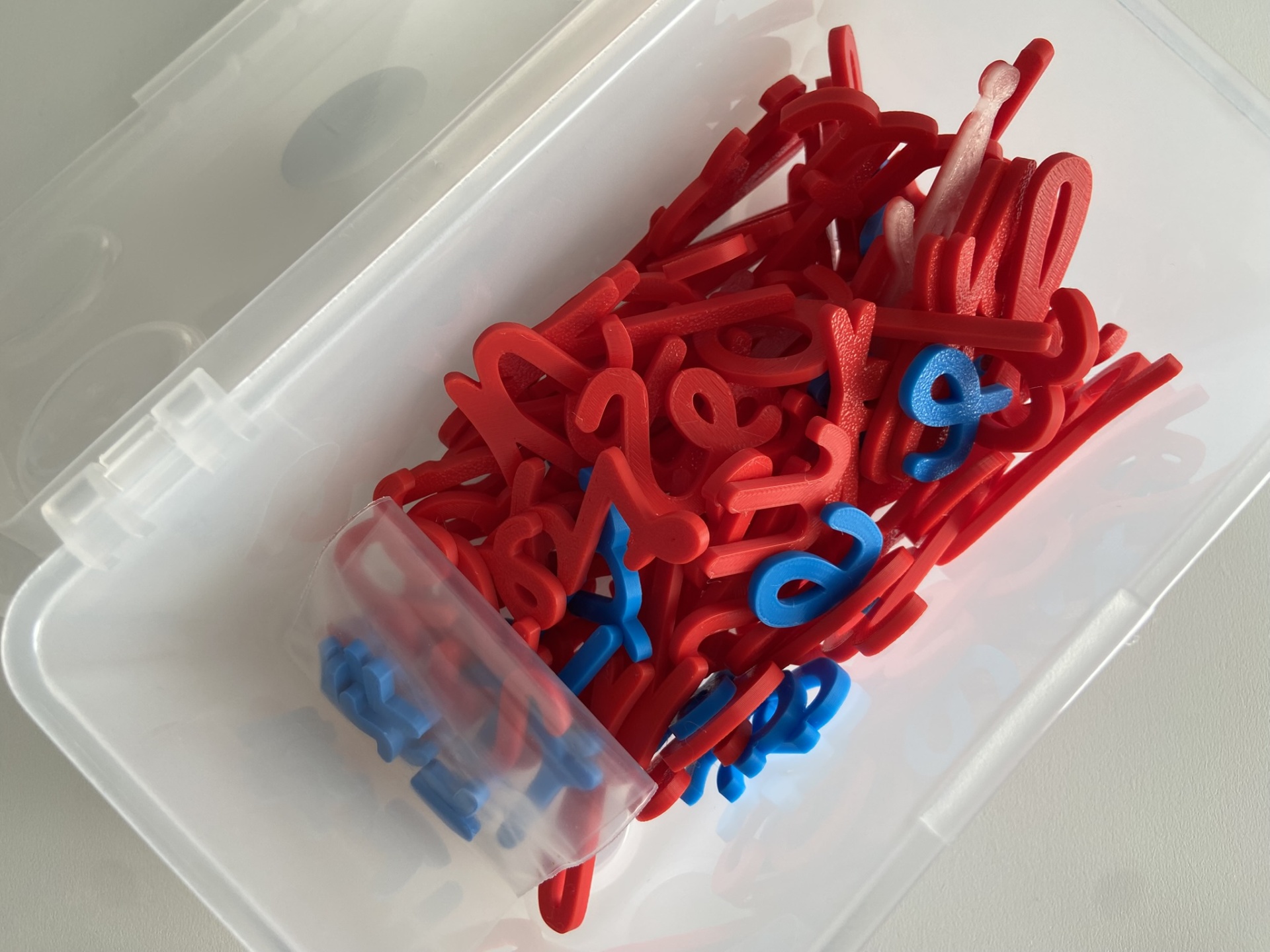 As letras são enviadas numa caixa de plástico