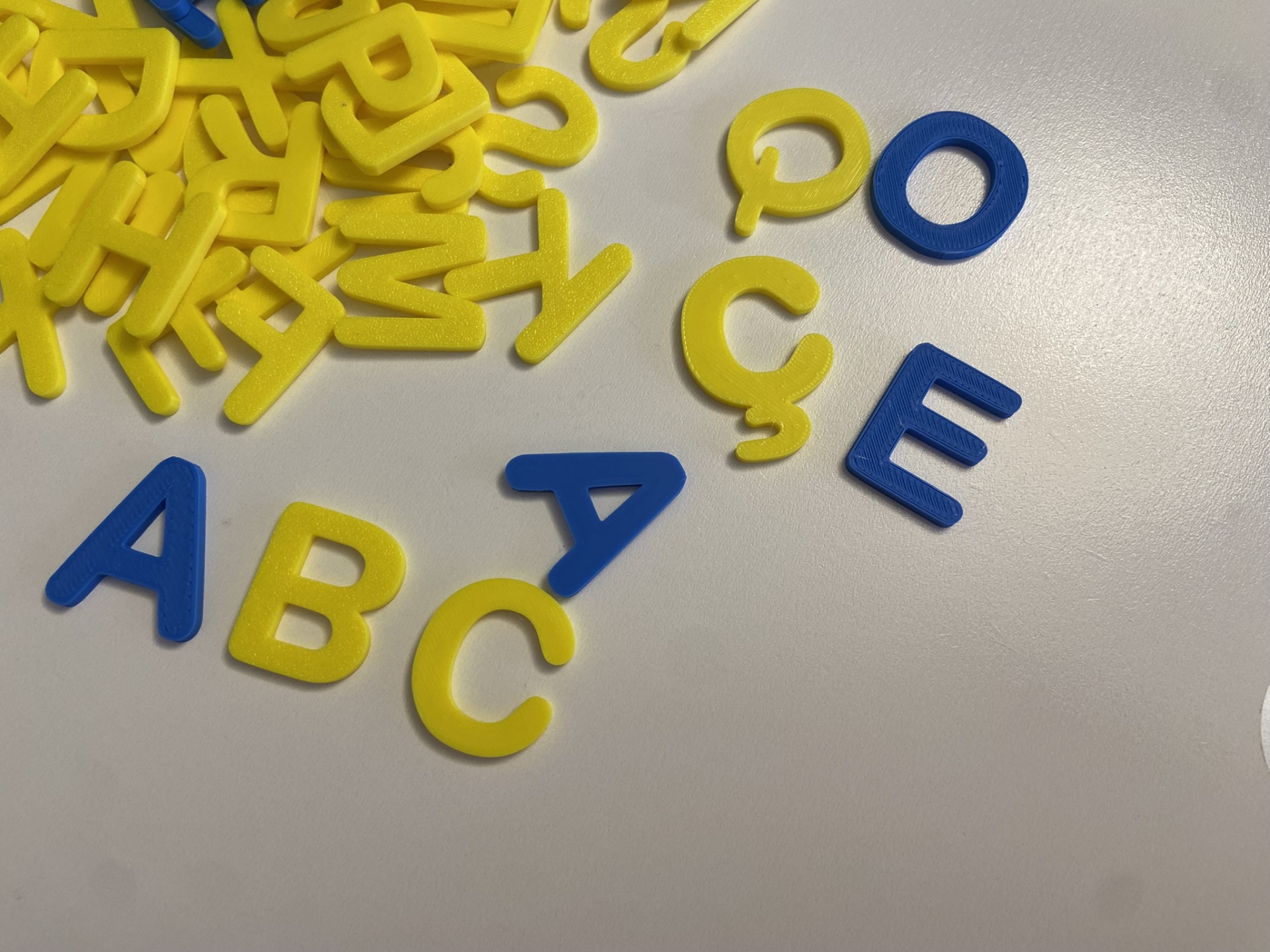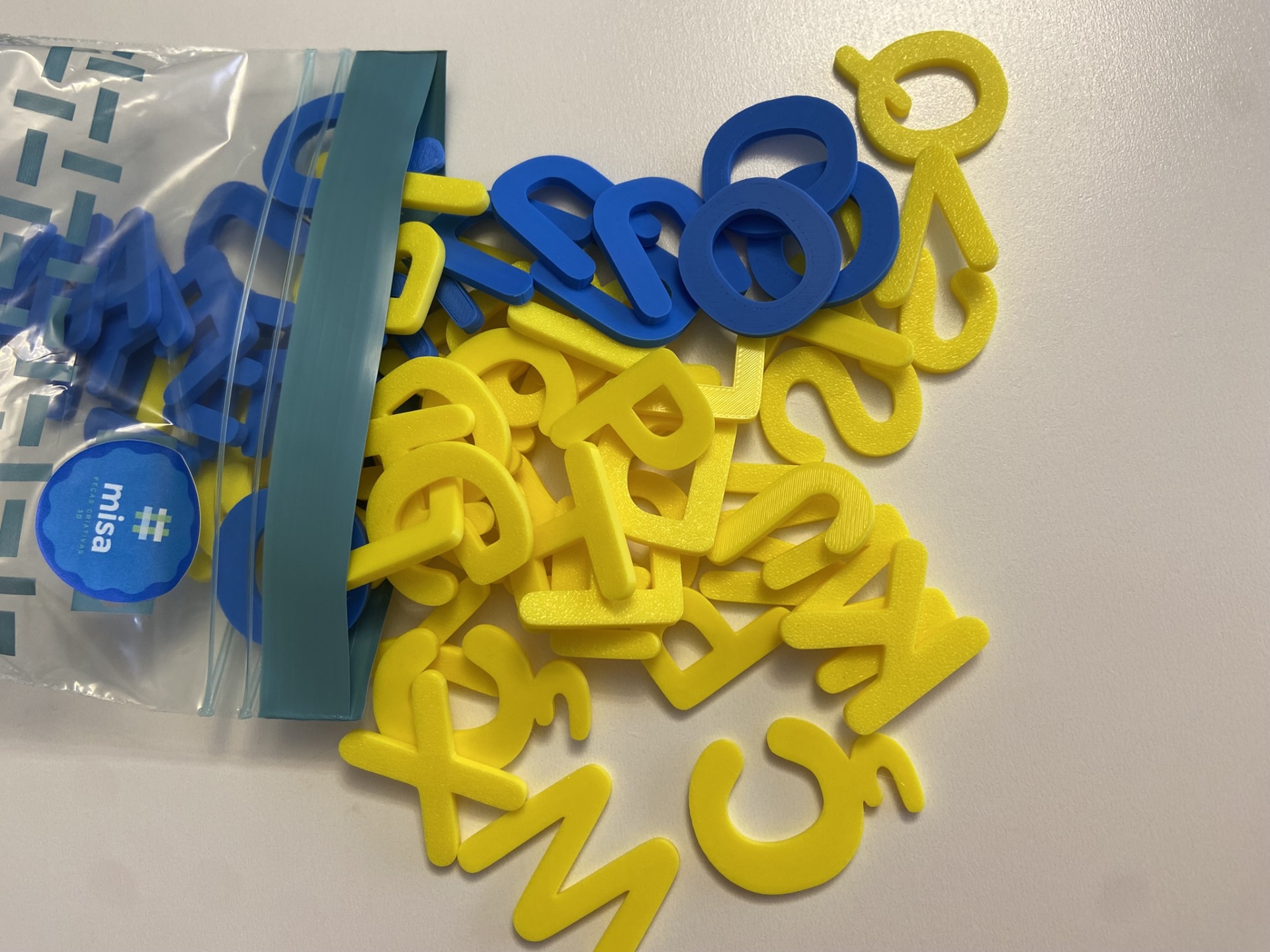 Alfabeto móvel # Letras de imprensa # maiúsculas 9,85 € Desconto de %. Partilhar Comprar Contactar Alfabeto móvel # Letras de imprensa # maiúsculas Com este alfabeto queremos proporcionar uma experiência de aprendizagem envolvente para os pequenos aprendizes. Este conjunto cria uma experiência que estimula os sentidos e inspira a curiosidade e autonomia. Este alfabeto contém: 5 unidades de cada vogal - cor azul 2 unidades de cada consoante - cor amarela 2 unidades - cedilha - cor amarela Dimensões: A letra "A" tem 3 cm de altura. As letras são enviadas num saco zip. Material: PLA O PLA (ácido polilático) é um material biodegradável e sustentável, derivado de fontes renováveis - como o amido de milho. Idade recomendada: +3 anos Contém peças pequenas que podem ser ingeridas. Utilizar com supervisão de um adulto. # Ref. 983 #