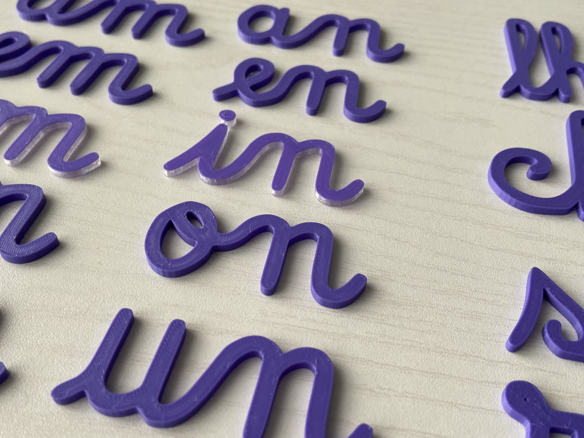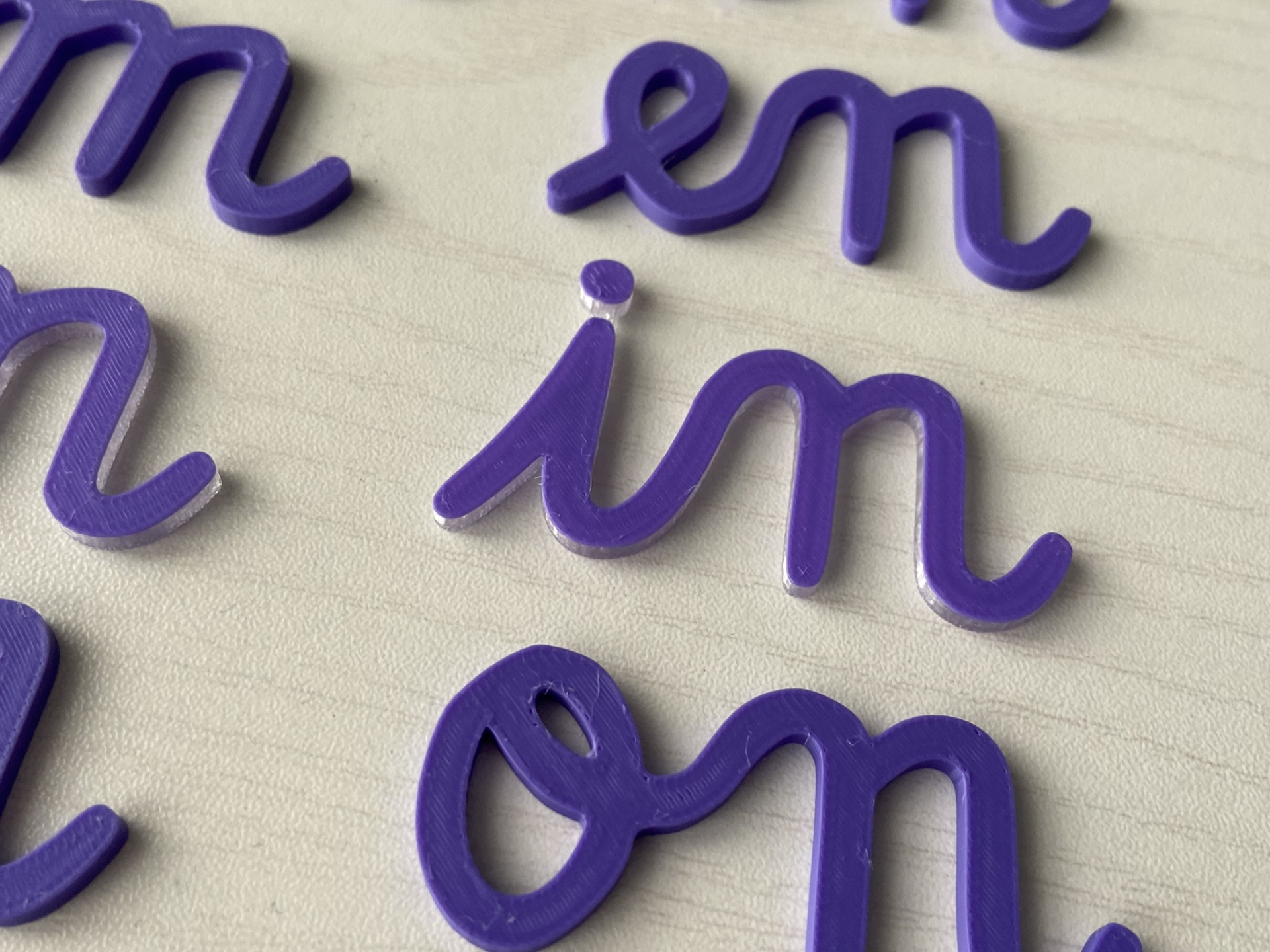 As pintas dos i estão unidas numa peça única, com cor transparente no verso.