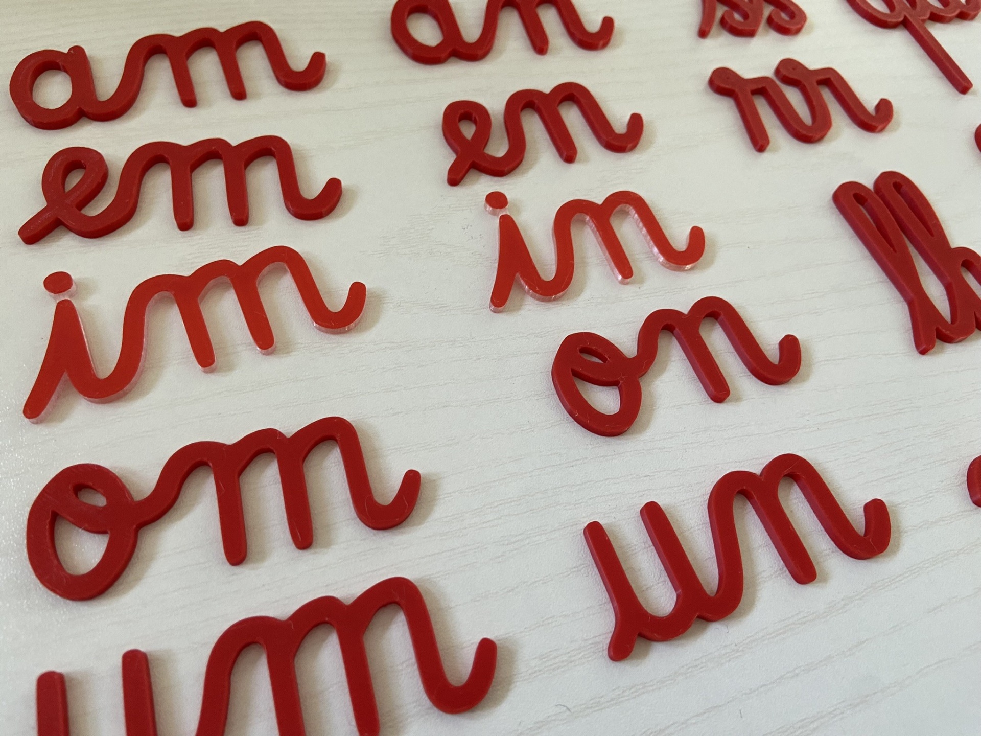 Dígrafos # vermelho # 2 unidades de cada 10,00 € Desconto de %. Partilhar Comprar Contactar Dígrafos am, an, em, en, im, in, om, on, um, unch, ss, rr, lh, nh, gu, qu Este conjunto contém 2 unidades de cada dígrafo Cor: vermelho Disponível noutras cores, basta contactar por email loja.misa.3d@gmail.com Medidas: "a" mede 2,5 cm de altura As pintas dos i estão unidas numa peça única, com cor transparente no verso. - Este tipo de letra é o mesmo dos nossos alfabetos móveis cursivos - Material: PLA O PLA (ácido polilático) é um material biodegradável e sustentável, derivado de fontes renováveis - como o amido de milho.