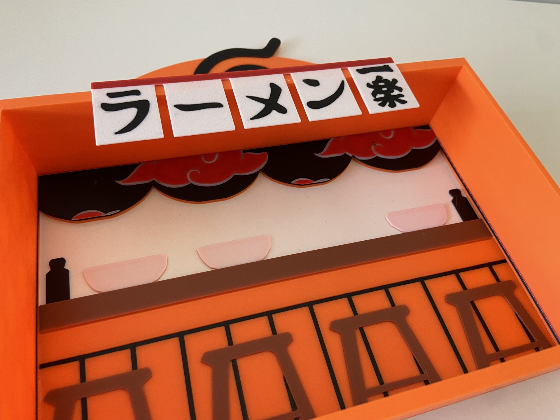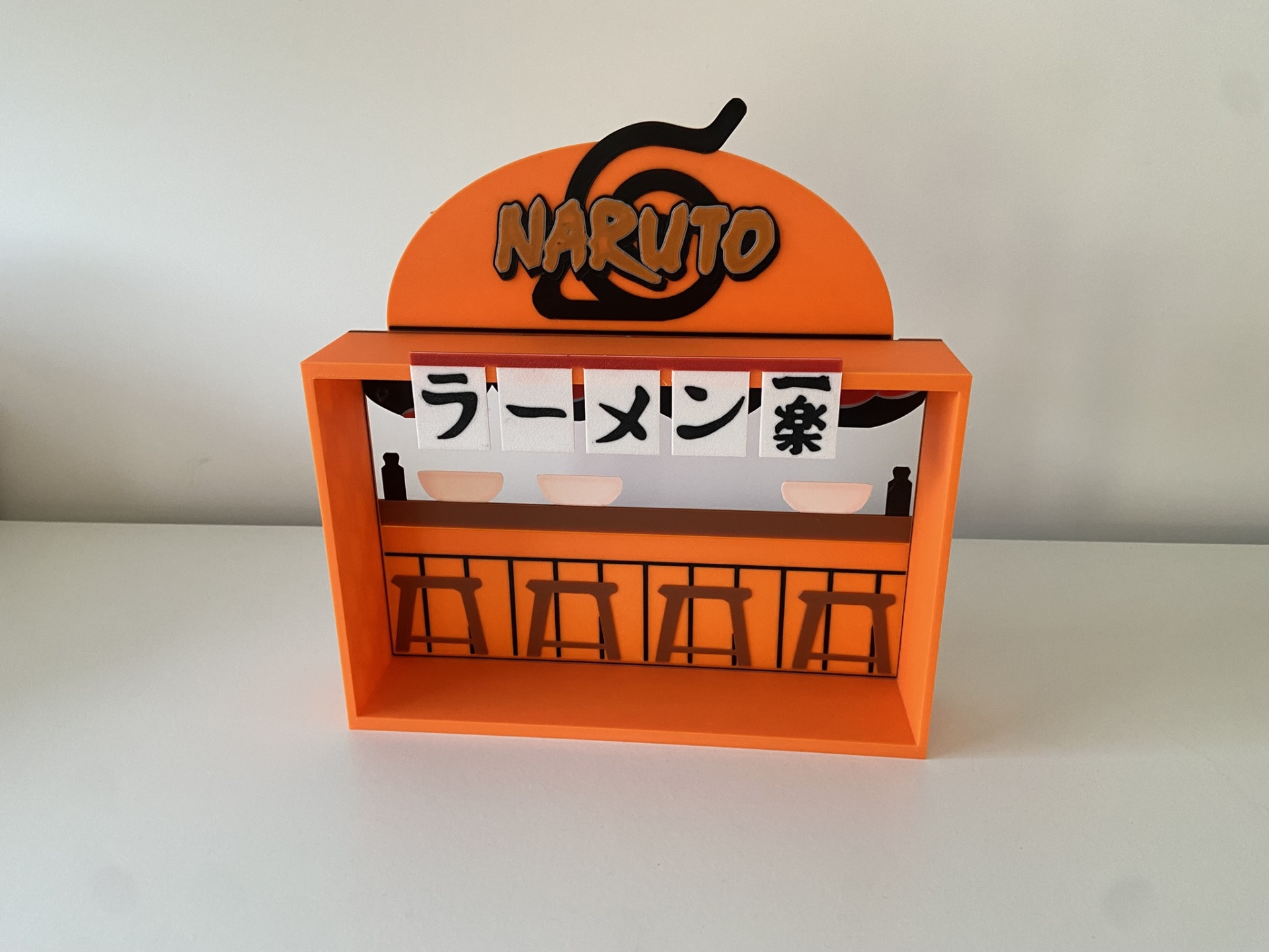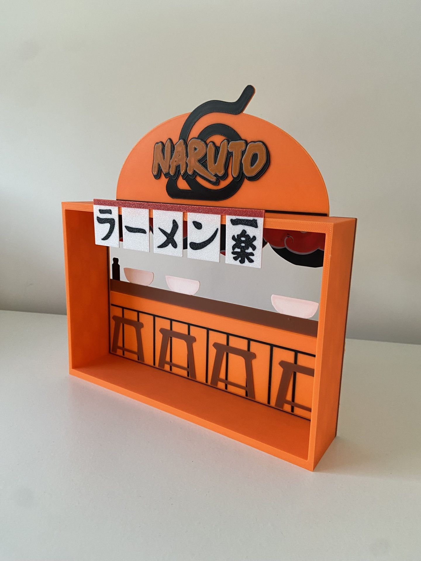 • Miniatura decorativa laranja com tema Naruto representando balcão de ramen