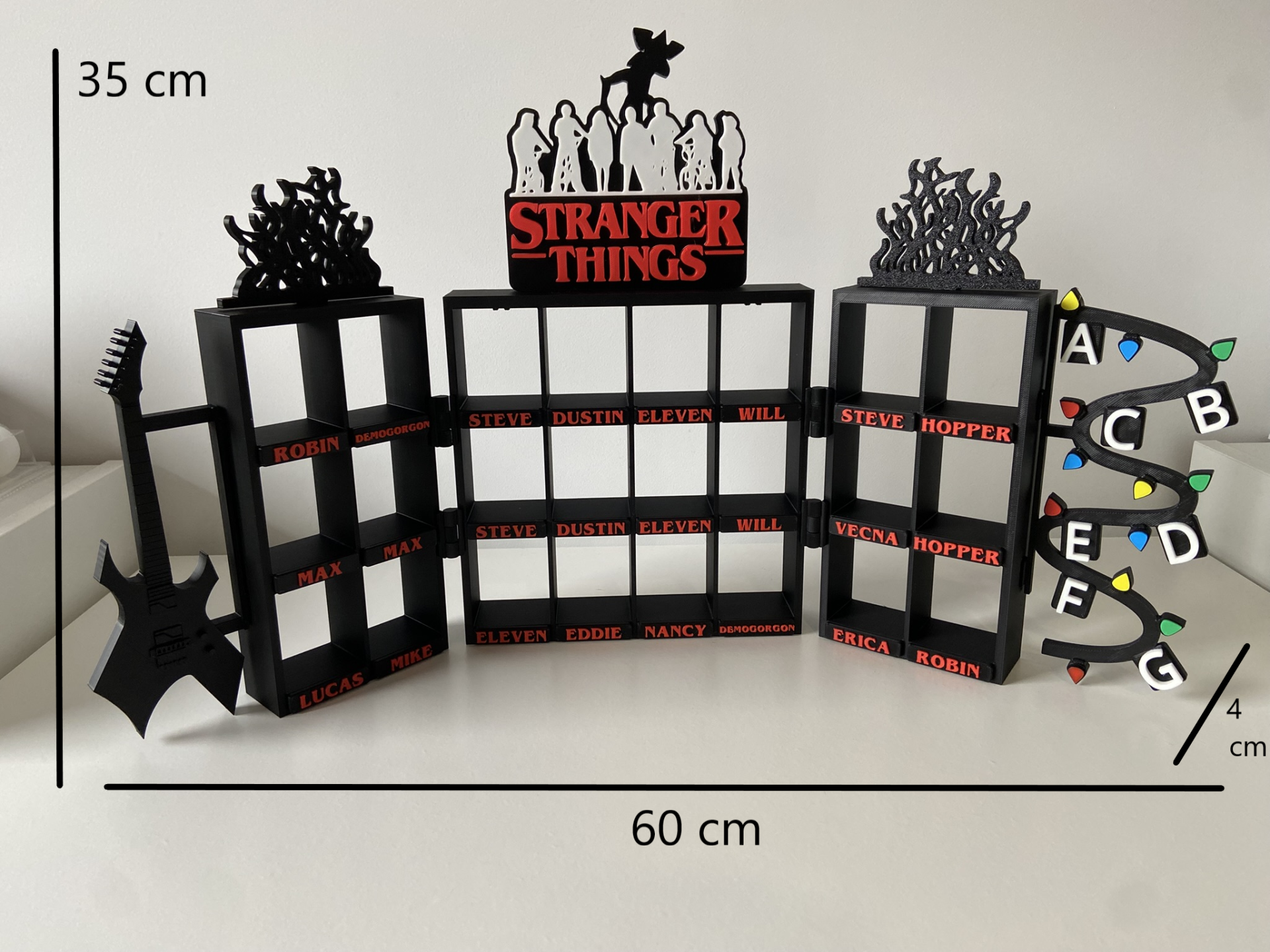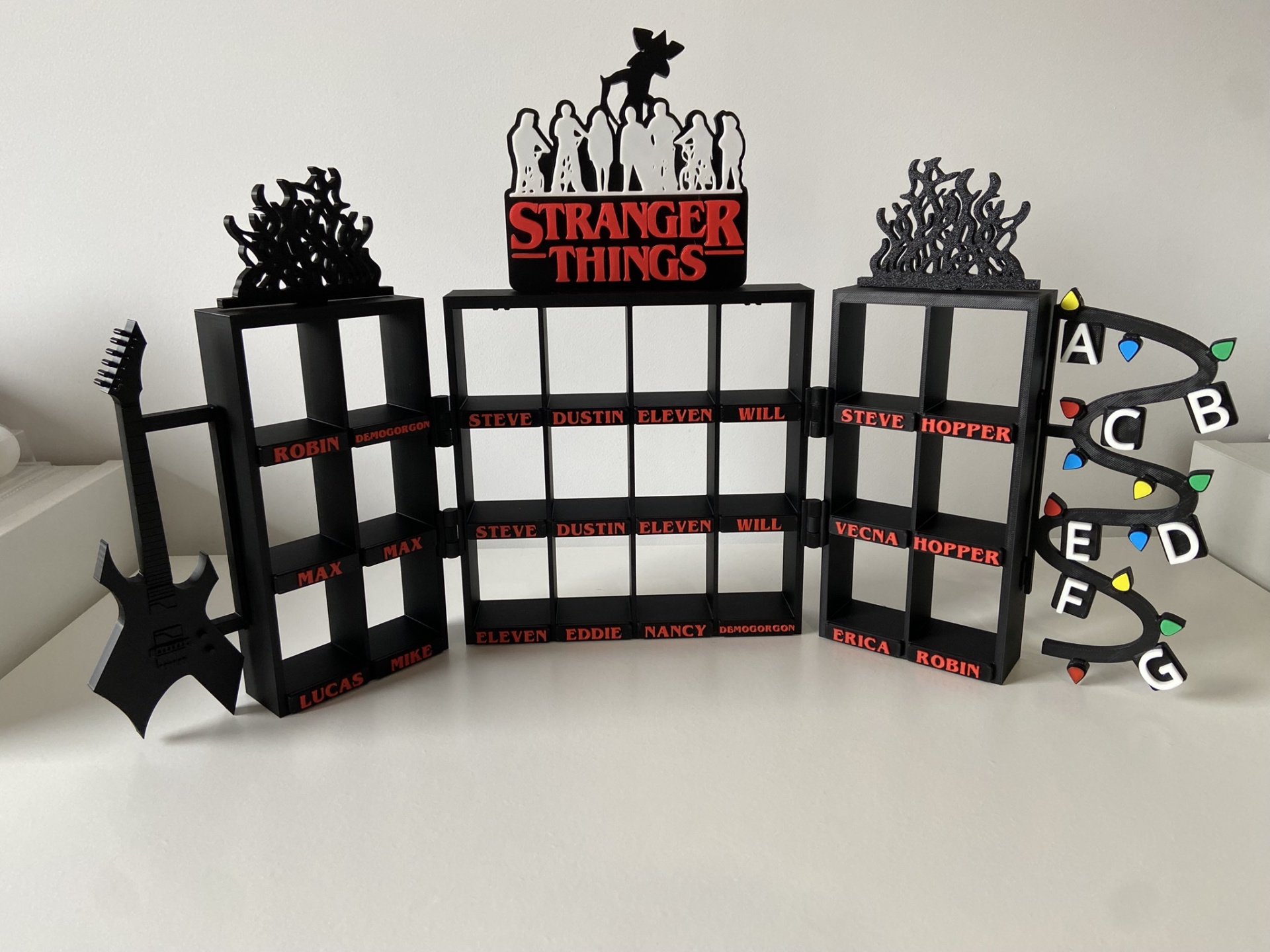 Esta estante permite organizar e expôr as miniaturas da coleção Stranger Things do Kinder Joy.