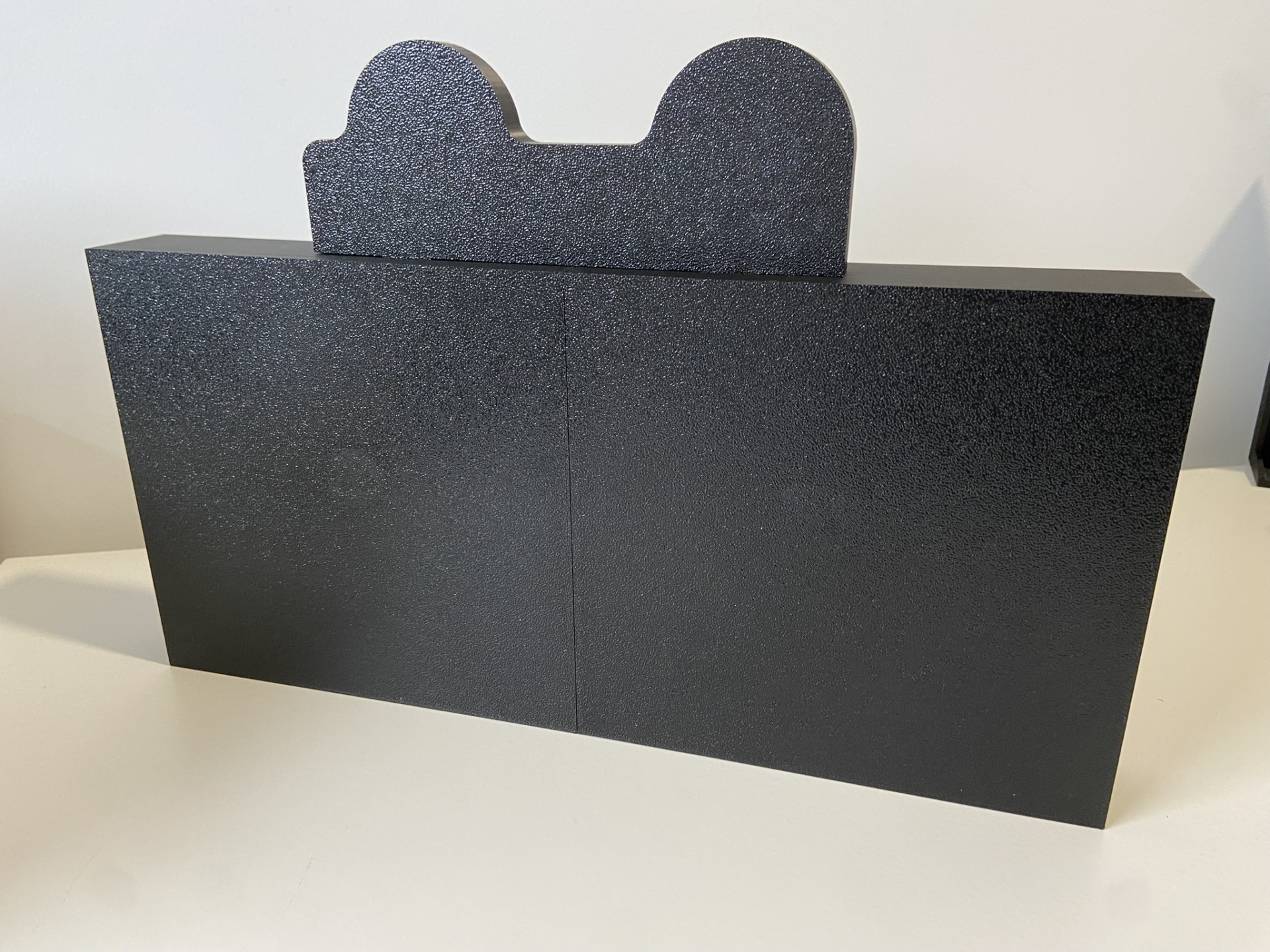 • Bloco preto texturizado com forma retangular e protuberância curva no topo