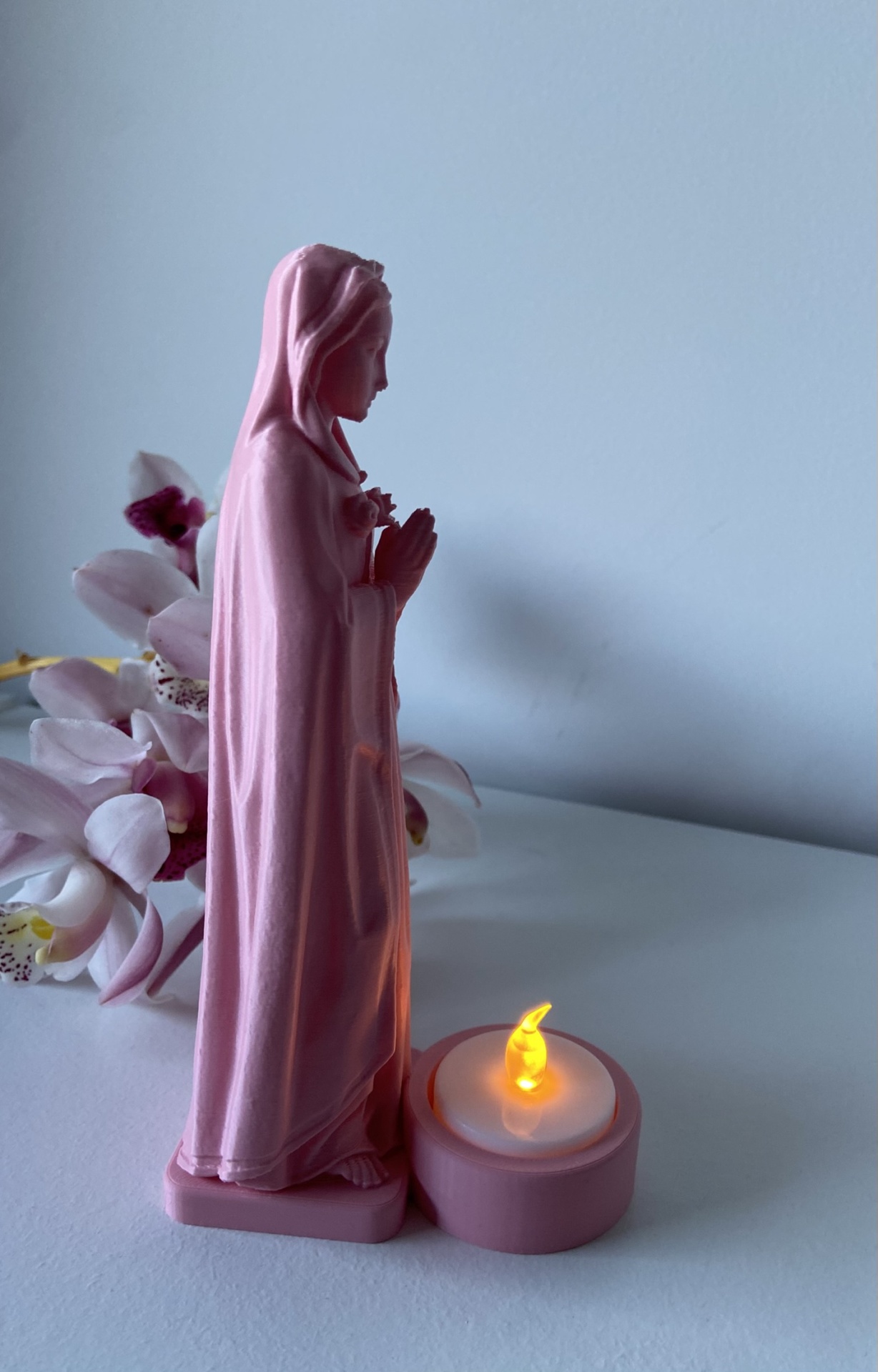 A nossa estátua da Virgem Maria com vela, é uma peça delicada que traz paz e aconchego ao seu lar.