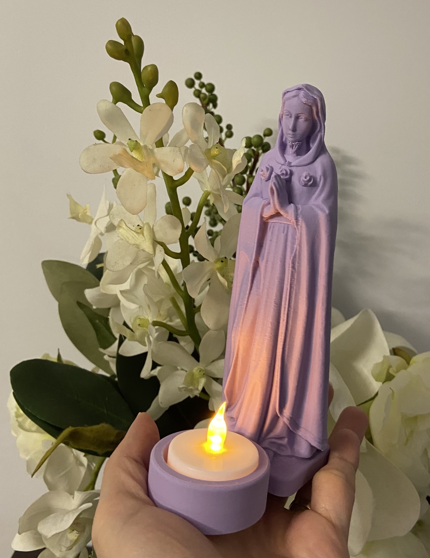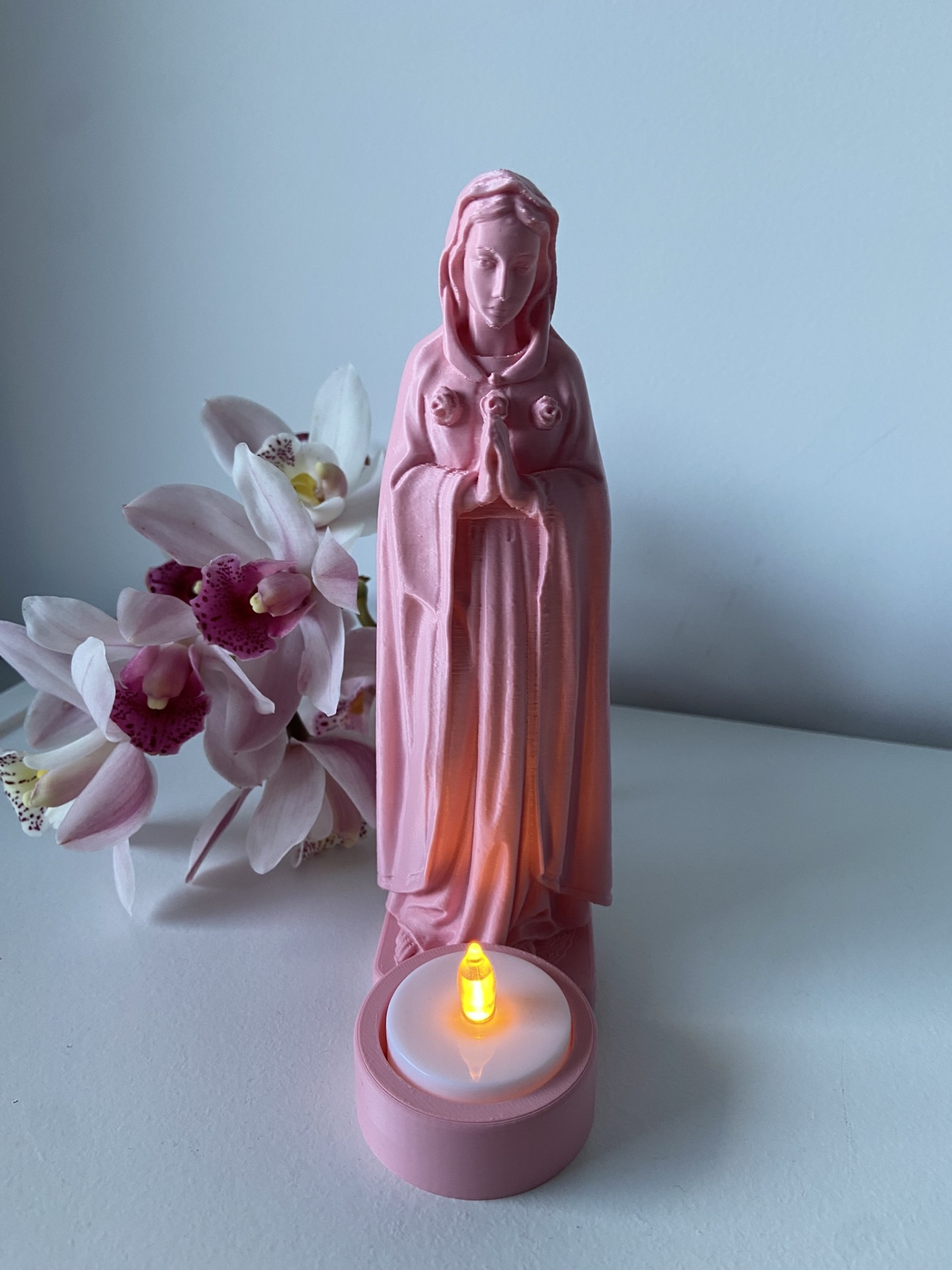 Feita em impressão 3D com detalhes elegantes, esta imagem convida à oração e ao recolhimento, iluminando momentos especiais.