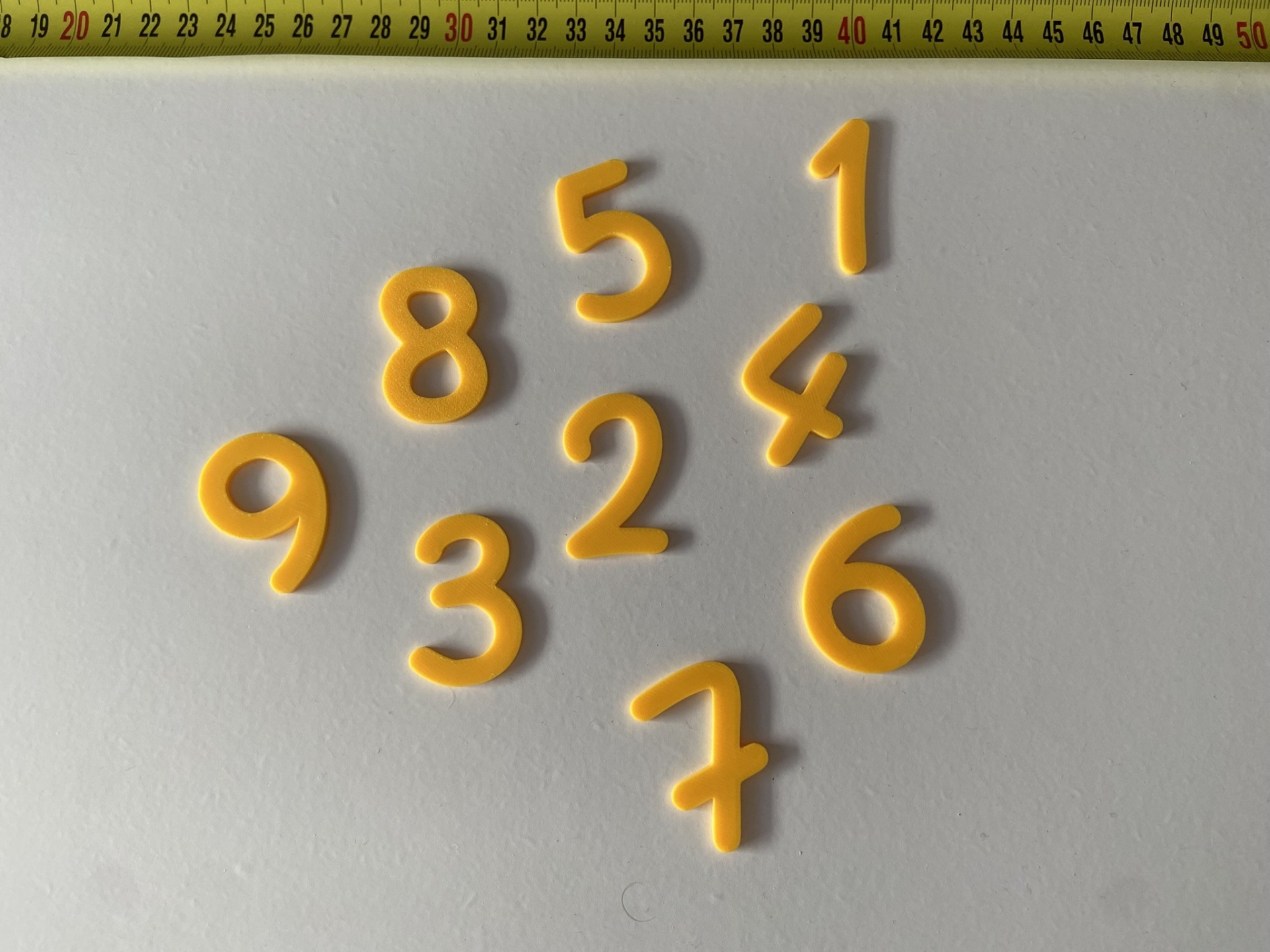 • Números de plástico amarelos do 1 ao 9 com fita métrica amarela