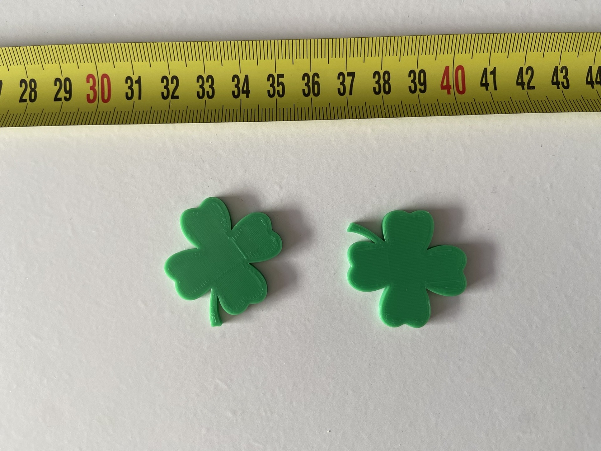 • Dois trevos verdes de quatro folhas com fita métrica amarela ao fundo