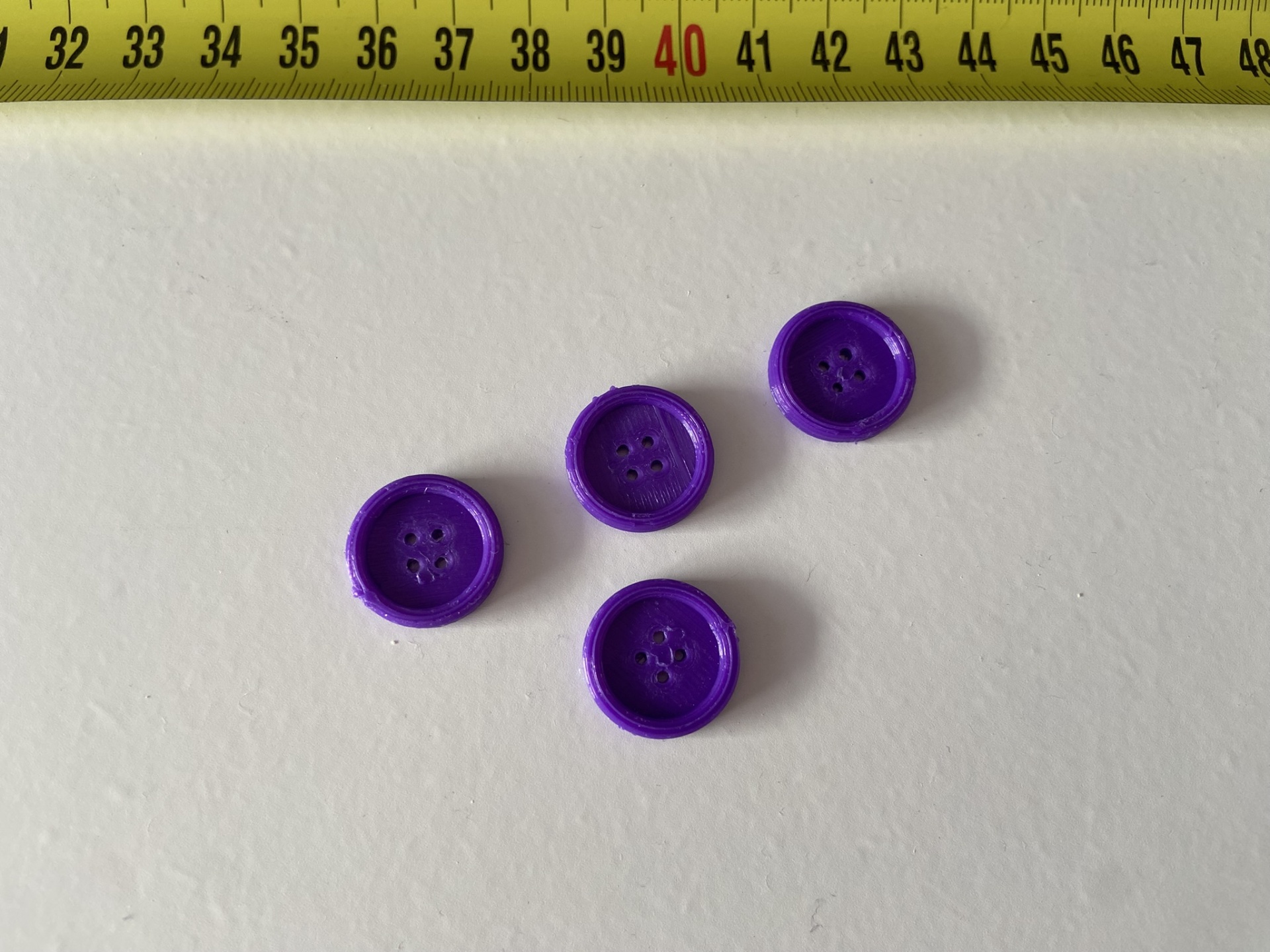 • Quatro botões roxos em superfície branca com fita métrica amarela acima