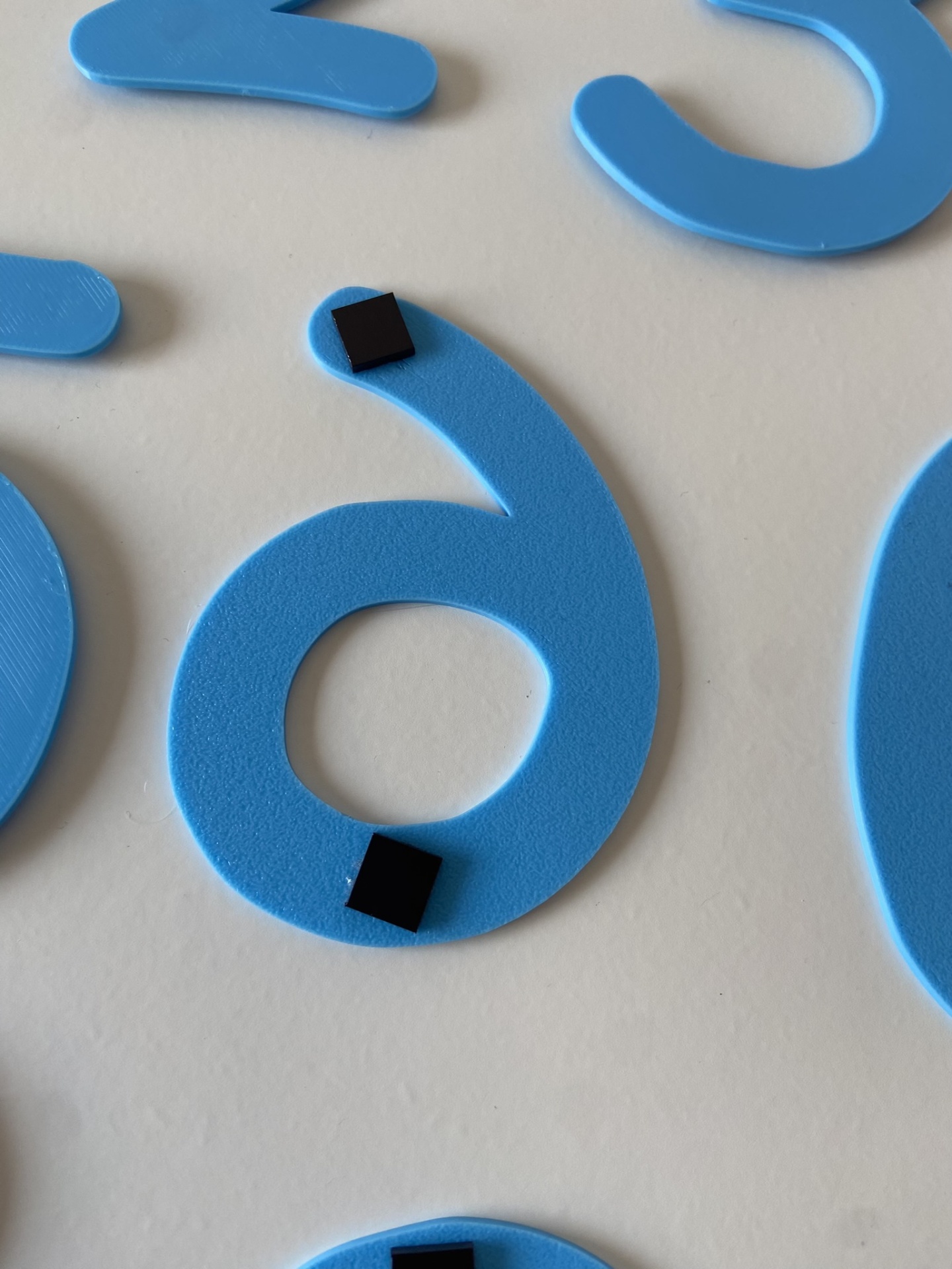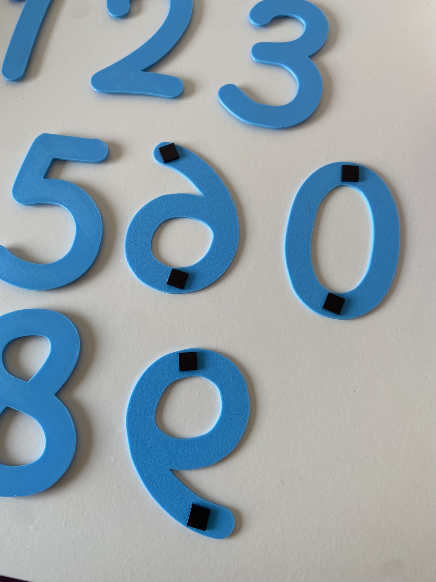 Números Magnéticos # 0 a 9 # 1 unidade de cada número 4,00 € Desconto de %. Partilhar O produto encontra-se sem stock. Números # 0 a 9 # Magnéticos Transforme o estudo da matemática numa aventura divertida com o nosso conjunto de números magnéticos de 0 a 9, impressos em 3D. Este conjunto torna a aprendizagem dos números mais interativa e envolvente, capturando a imaginação das crianças. Com um design colorido e peças fáceis de manusear, os números magnéticos são perfeitos para explorar conceitos matemáticos de forma lúdica. Este conjunto contém: 1 unidade de cada número (0 a 9) na cor azul claro - com íman atrás Dimensões: Os números tem 10 cm de altura. Material: PLA (ácido polilático) é um material biodegradável e sustentável, derivado de fontes renováveis - como o amido de milho. # ref. 325 #