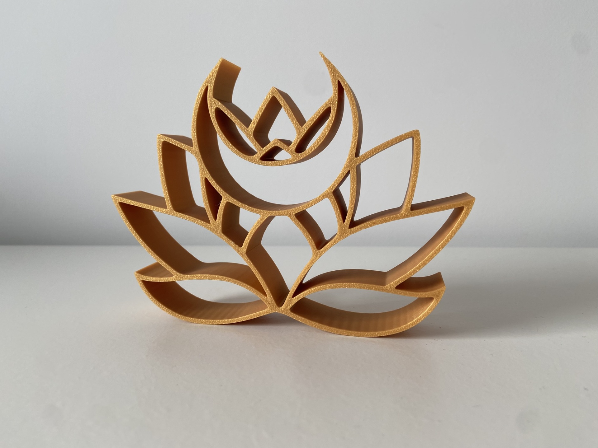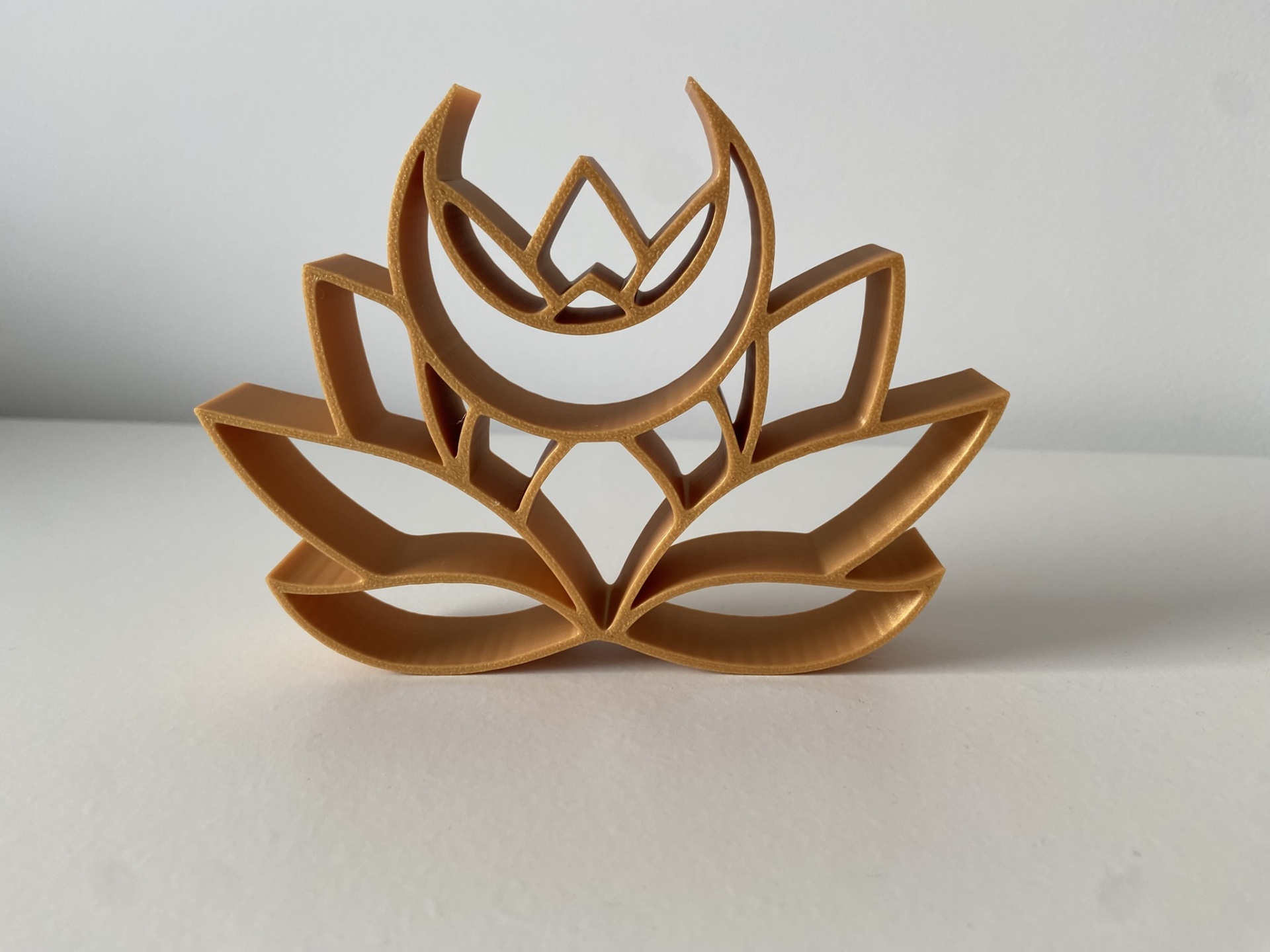 Em tom dourado, esta peça transmite harmonia, luz e serenidade, sendo perfeita para colocar em casa, no espaço de meditação, sala de yoga ou escritório.