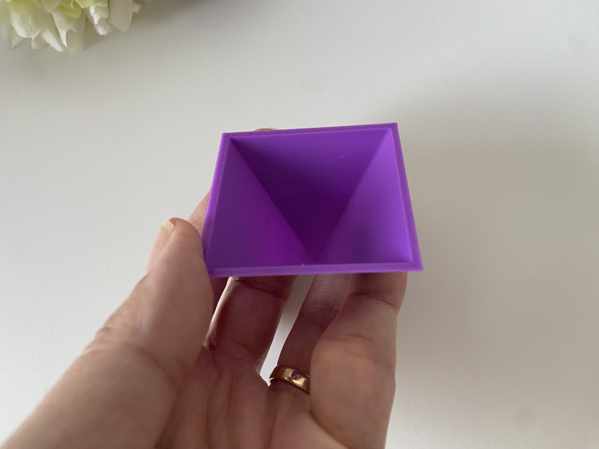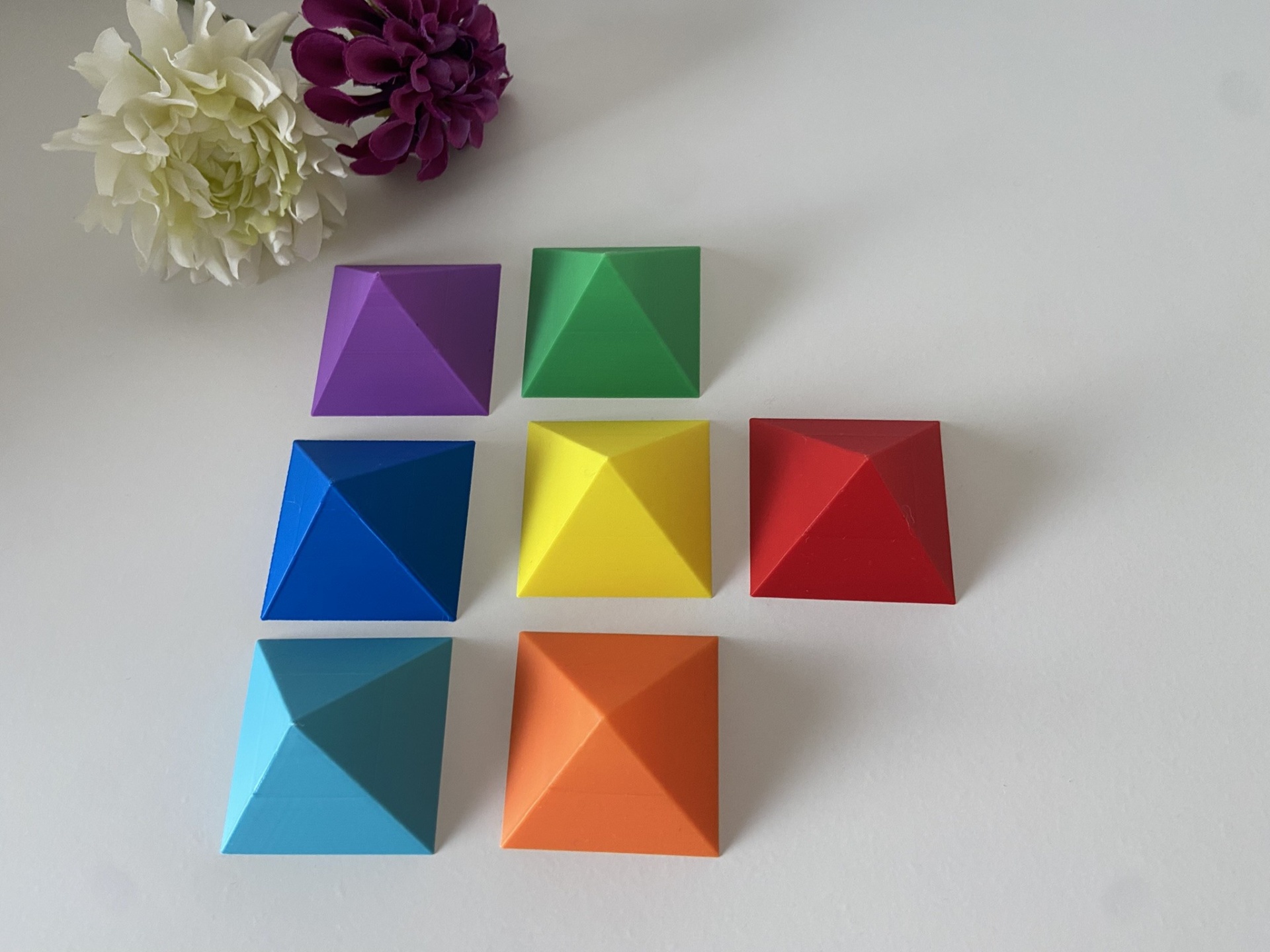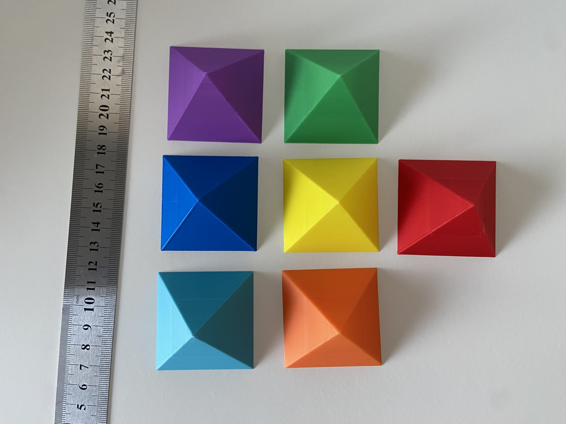 Estas pirâmides têm 5 (base) x3,2 cm (altura)
