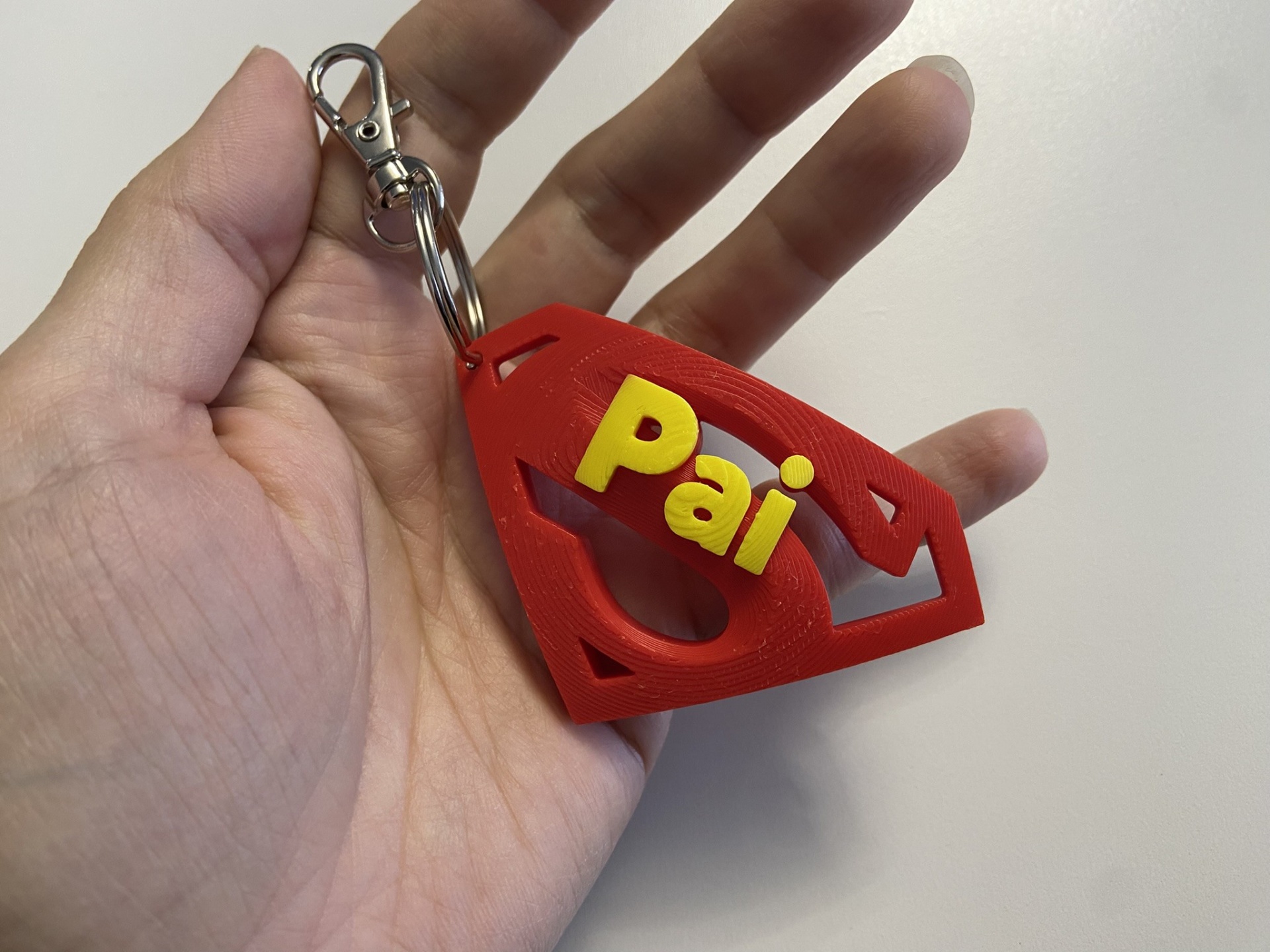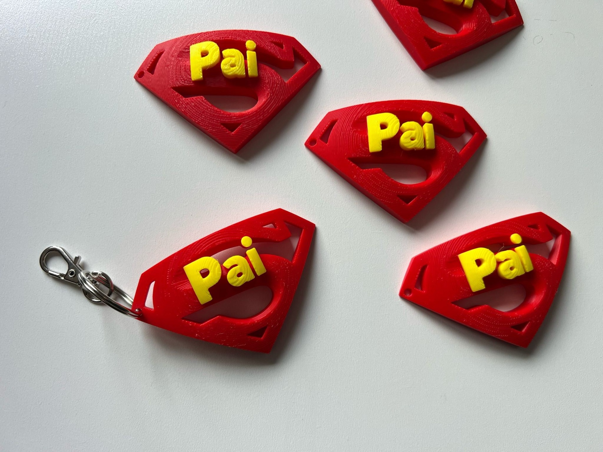 • Chaveiro vermelho do Superman com a palavra 'Pai' em amarelo