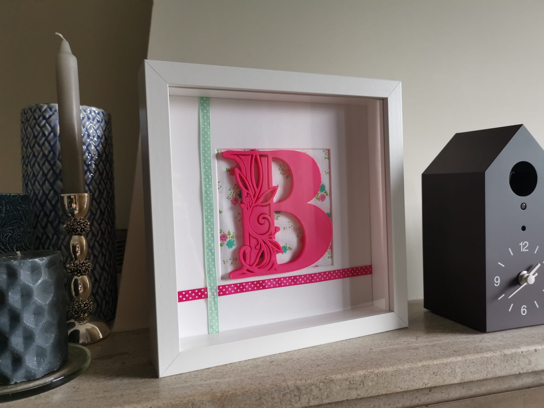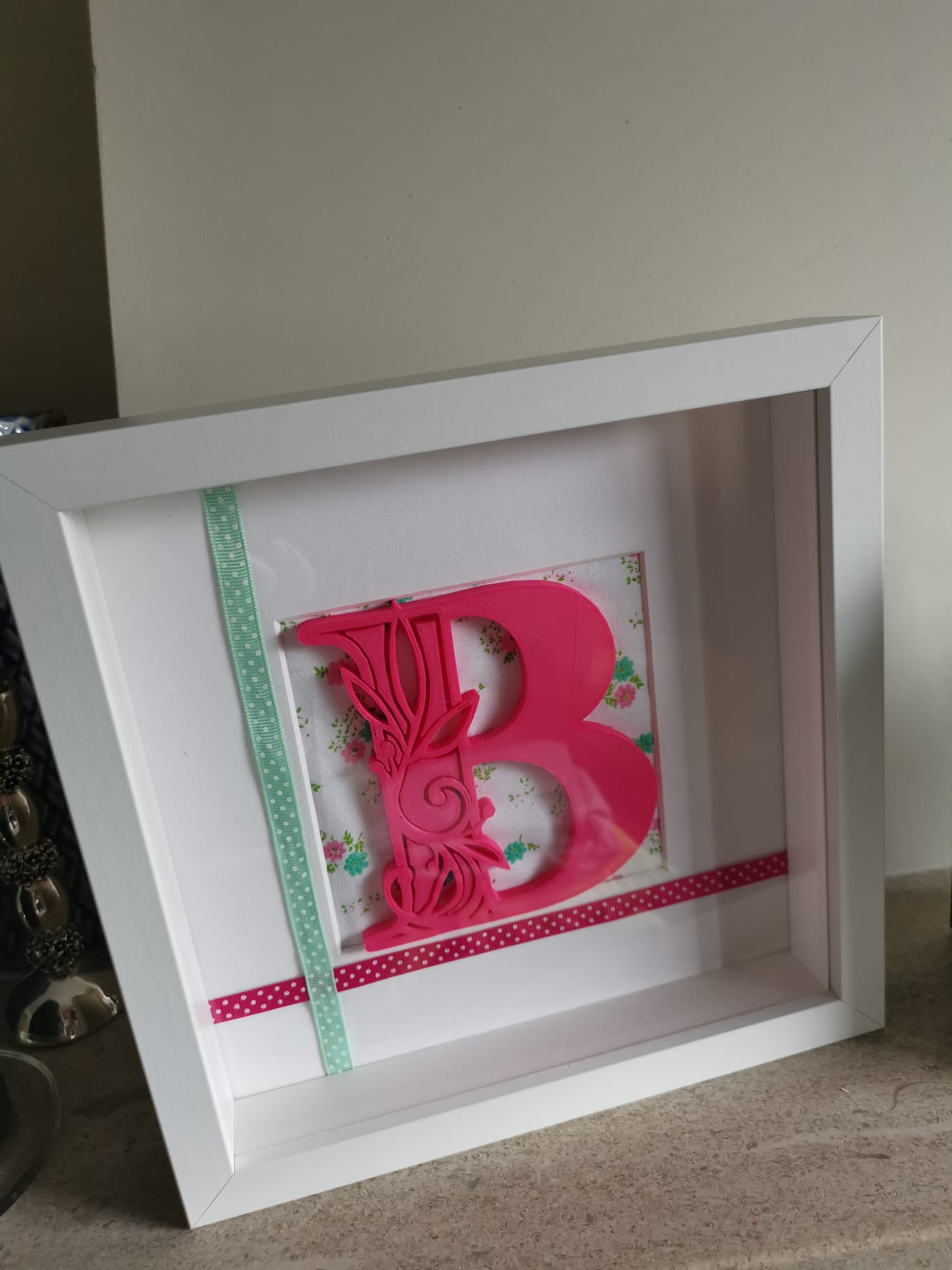 Quadro com Monograma "B" 12,50 € Desconto de %. Partilhar Comprar Contactar Quadro com Monograma B Crie memórias com os nossos quadros únicos. Ofereça um presente personalizado e memorável. Moldura: 25x25 cm Material: # Letra B: PLA O PLA (ácido polilático) é um material biodegradável e sustentável, derivado de fontes renováveis - como o amido de milho. # Moldura/ Moldura interior: MDF, Folheado em papel ## Peça única ##