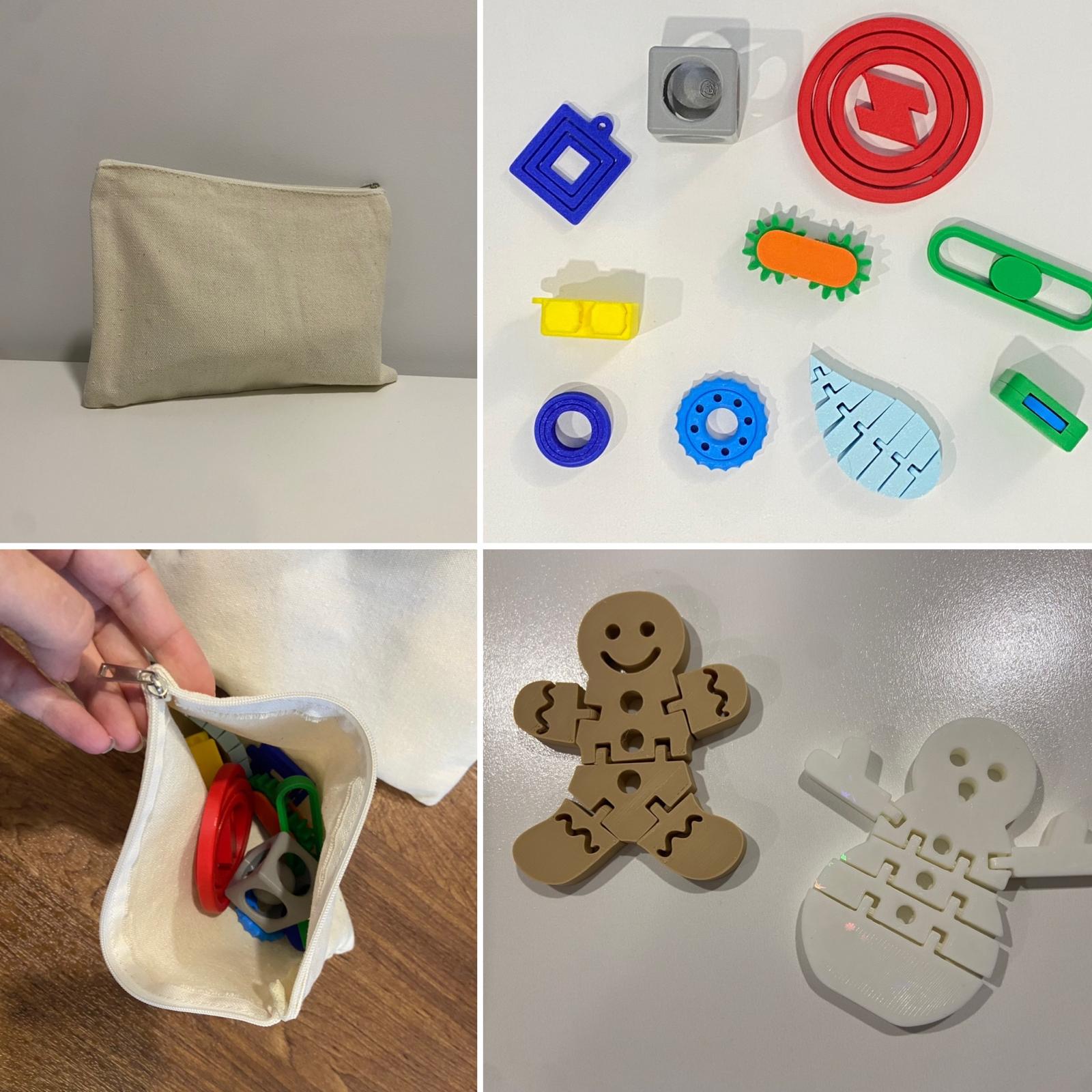 Saco com Fidget Toys #1 20,00 € Desconto de %. Partilhar O produto encontra-se sem stock. Saco com Fidget Toys #1 Leve os seus fidget toys para qualquer lugar! Conheça o nosso saco prático e discreto, pensado para facilitar a sua vida. ....Porque o bem-estar e a concentração não têm hora nem lugar. Os fidget toys auxiliam na regulação sensorial, promovem a calma e ajudam a manter o foco em ambientes desafiantes Cada conjunto é único. Saco em pano cru com fecho Medidas: 20x15 cm Inclui os fidget toys apresentados nas fotos - 12 unidades Material: PLA O PLA (ácido polilático) é um material biodegradável e sustentável, derivado de fontes renováveis - como o amido de milho.