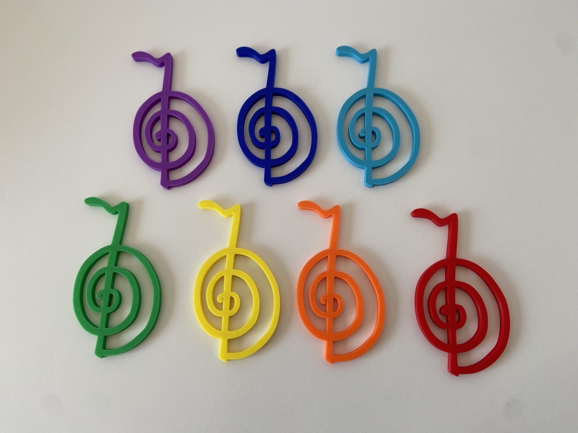 Nesta coleção, cada símbolo foi cuidadosamente produzido em impressão 3D e está disponível nas 7 cores dos chakras, permitindo que escolhas de acordo com a tua necessidade energética ou utilizá-los em conjunto para promover equilíbrio total: