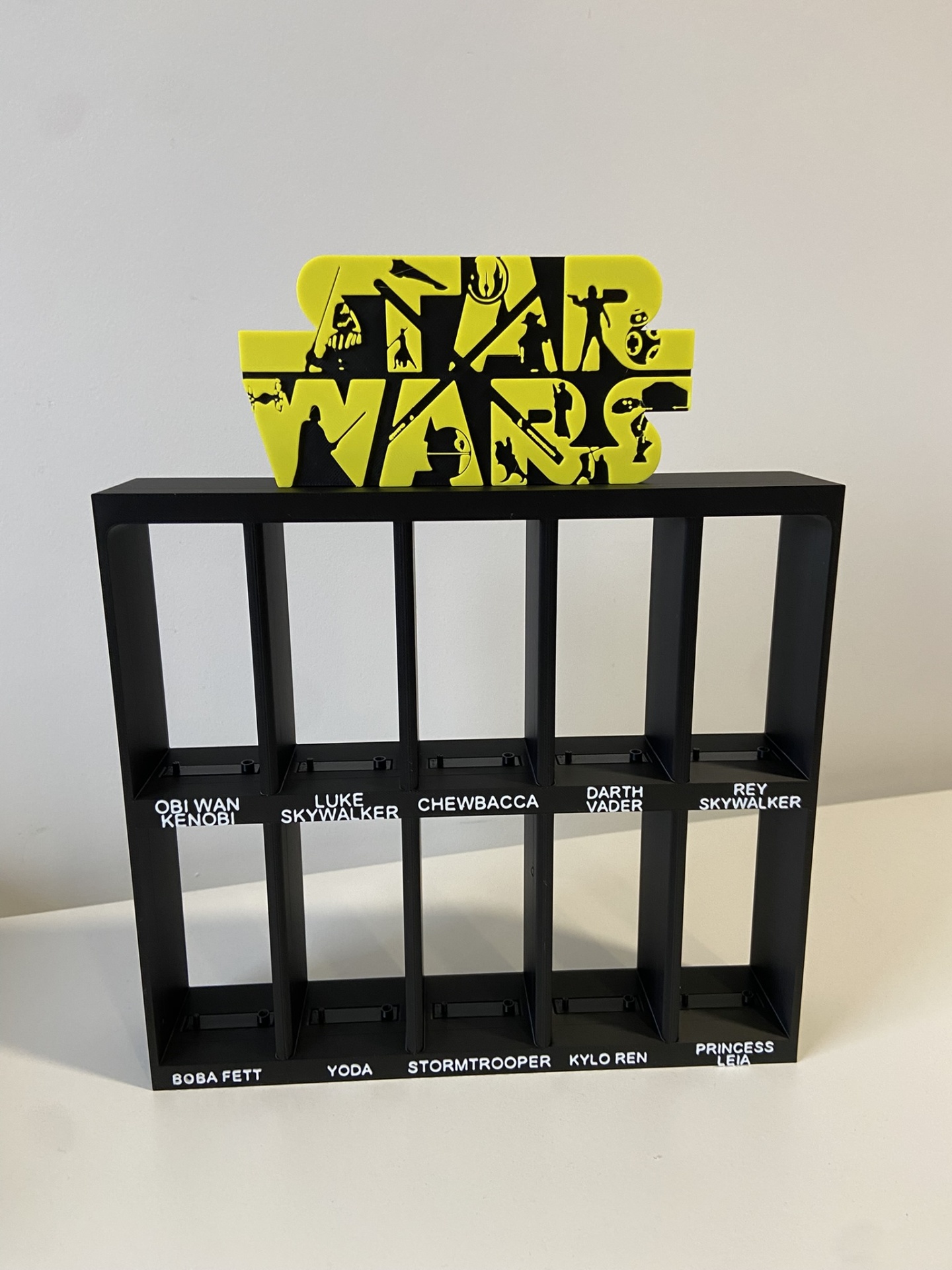 Suporte para figuras Star Wars - Kinder 14,00 € Desconto de %. Partilhar Comprar Contactar Suporte para figuras Star Wars - Kinder Ideal para organizar e exibir a tua coleção! Design compacto , perfeito para destacar as tuas figuras favoritas. Pensada para colecionadores que gostam de ver tudo no seu lugar. As figuras encaixam no suporte presente em cada divisória. ### Não inclui figuras ### Medidas: 23 x 21 x 4,6 cm + 7 cm logotipo # Disponível noutras cores, basta indicar nas notas da encomenda as cores pretendidas # Material: PLA O PLA (ácido polilático) é um material biodegradável e sustentável, derivado de fontes renováveis - como o amido de milho. Material resistente. Marca misa3D Características