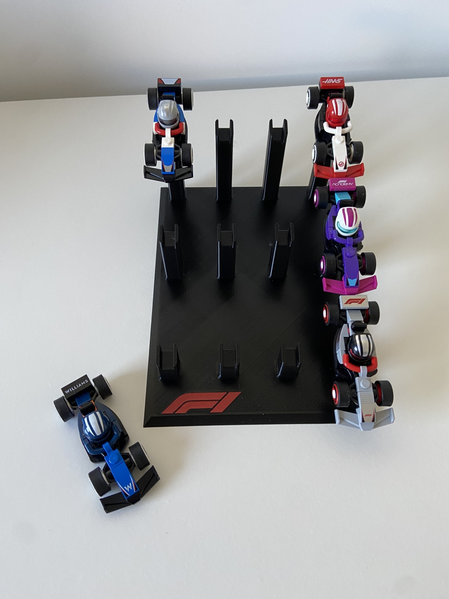 Capacidade para 12 mini carros de F1 LEGO
